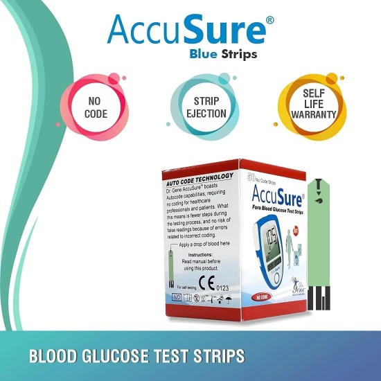Product Description : Accu Sure Test Strips primarily used for self testing the blood sugar level, these strips are aptly designed for people on the go. You need to simply put a small drop of blood on the strip and get fast results without any hassles of going to the doctor. Now you can check your blood sugar level within the comfort of your home. |