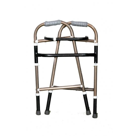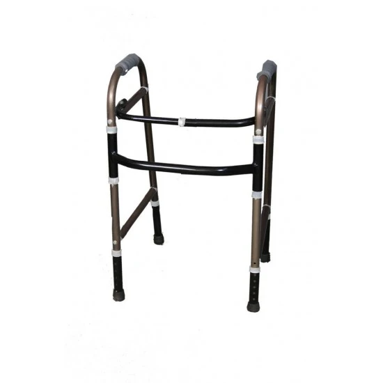 Comfort Folding walker is a convenient device to allow the patient to be mobile even with higher degrees of disability because of extreme old age, any nervous disorder, fracture, disease, injury etc. It is designed to be dragged with full weight of the patient supported by the walker. It comes with adjustable height and folds easily with a one touch button release.