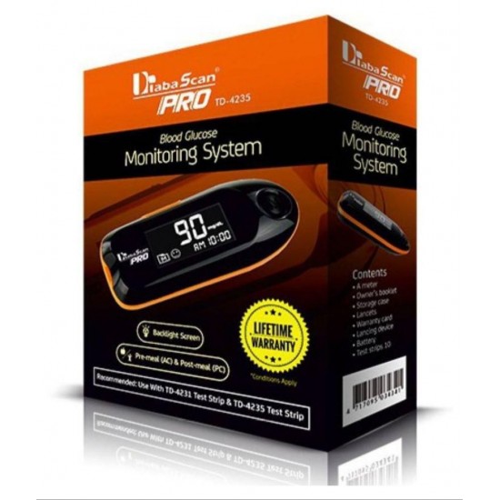 DiabaScan Gulcometer is used for self testing Blood gulcose level. It allow users to take blood glucose readings any time, any place. It provides accurate results within 7 seconds only. This makes for a safer strip ejection metre. It also ensures Health Care Professionals as well as patients to discard strip without touching it.