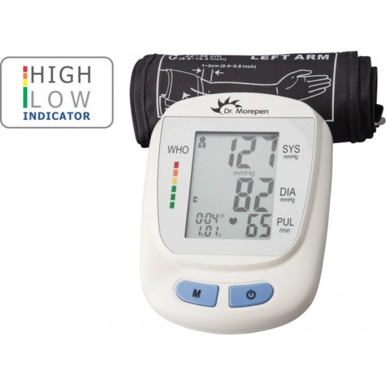 Product Description :Dr. Morepen BP 09 Automatic Blood Pressure Monitor is intended for non invasive measuring of an adult individual systolic, diastolic, blood pressure and heart rate using the oscillometric method. The device is designed for home or clinical use. All values can be read out in one LCD display. The measurement position is on adult upper arm only |
