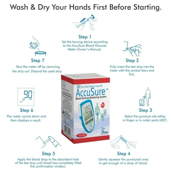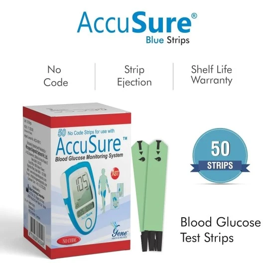 Accu Sure Test Strips primarily used for self testing the blood sugar level, these strips are aptly designed for people on the go. You need to simply put a small drop of blood on the strip and get fast results without any hassles of going to the doctor. Now you can check your blood sugar level within the comfort of your home. |