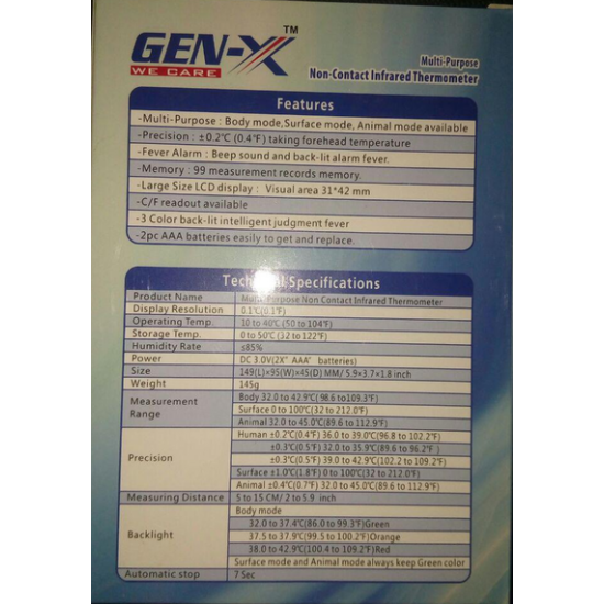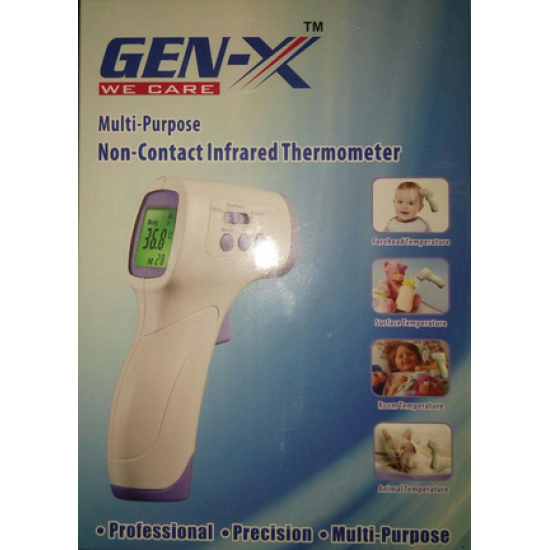 GEN-X Non-contact Infrared Thermometer featuring a large LED backlight display,