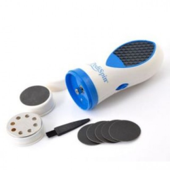 It is a professional pedicure machine which gently removes calluses dry skin product. It have two pad for remove skin, one buffing pad,one finishing pad,and  additional 6 replacement finishing pads given for free. It have two speeds, low speed for dry skin; high speed for dry calluses. Buffing pad is made by precision stainless steel microfiles.safety design, don't hurt good skin Finishing pad can massage your foot. Instantly remove dry, rough skin and eliminate calluses with the Pedi Spin. The gentle abrasion works with dual speeds to cover heels, soles, and toes. Strong enough to effect tough skin but gentle enough for delicate areas. Use detachable collector to quickly and cleanly dispose of removed skin. Ergonomic design fits in the palm of your handy as it convenient for travel as it can be packed away with ease