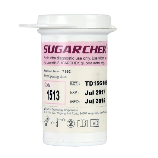 • The Sugarchek strips are most stable packed in vials which protects the enzyme in the strips from extreme temperatures of 2 to 32°C and can be used upto 90 days once the vial is opened.
