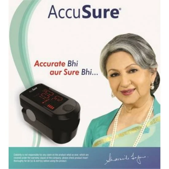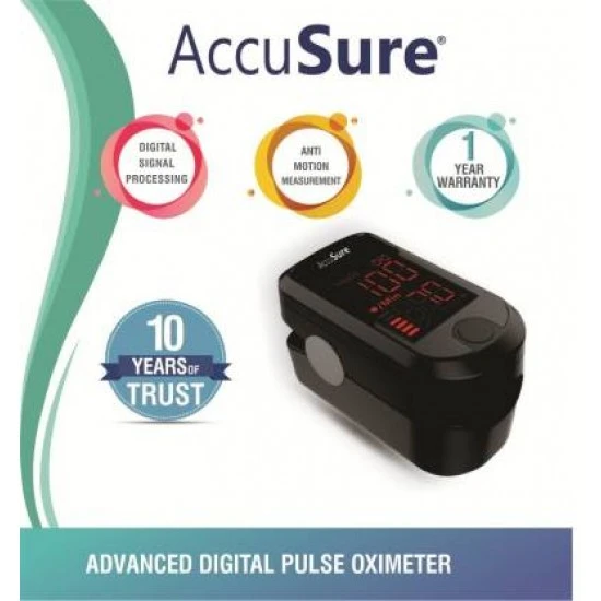 AccuSure Pulse Oximeter (FS10 E) is mainly used for monitor arterial hemoglobin oxygen saturation (SPO2) and pulse rate & its comes with slogan "Accurate Bhi aur Sure Bhi...." This Pulse Oximeter is equipped with a number of features i.e. Large LED Display, Auto Power Off function, Anti-motion, Accurate, Durable, Efficient, Safe and many more. This product is reusable medical device.