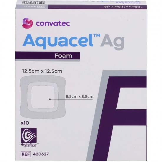 Aquacel Ag Foam Adhesive Dressing (12.5cm x 12.5cm), Ref #420627 from ConvaTec is a self-adherent antimicrobial sterile wound dressing, combining the infection-fighting power of ionic silver with the unique capabilities of Hydrofiber Technology.