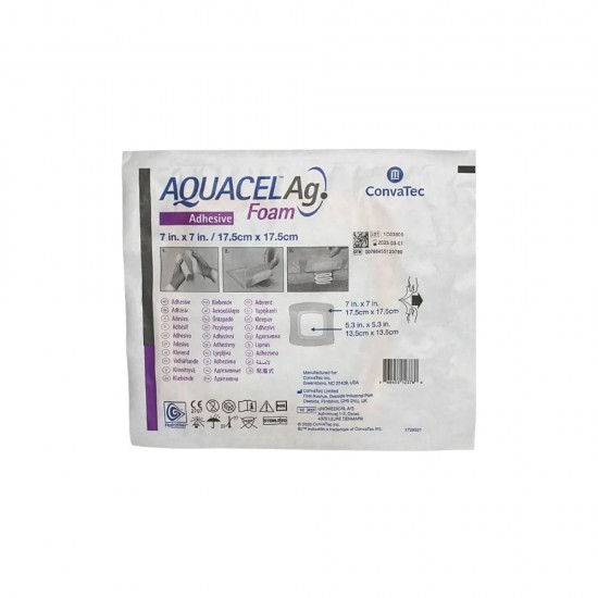 Aquacel Ag Foam Adhesive Dressing (17.5cm x 17.5cm), Ref #420628 from ConvaTec is a self-adherent antimicrobial sterile wound dressing, combining the infection-fighting power of ionic silver with the unique capabilities of Hydrofiber Technology.