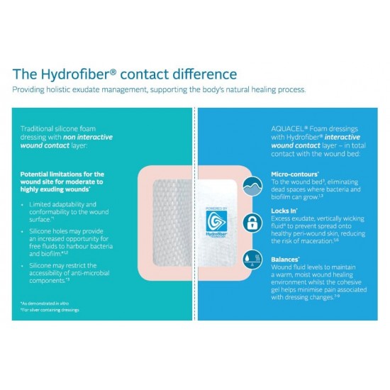 Powered by Hydrofiber® Technology: AQUACEL® Ag interface with Hydrofiber® Technology gels on contact with the wound surface to help maintain a moist wound healing environment