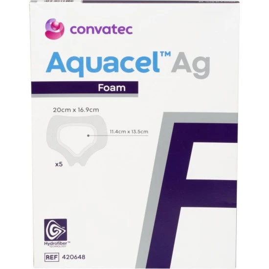 Free Shipping on orders above ₹599 Aquacel Ag Foam Adhesive Sacral Dressing (20cm x 16.9cm), Ref #420648 from ConvaTec is a self-adherent antimicrobial sterile wound dressing, combining the infection-fighting power of ionic silver with the unique capabilities of Hydrofiber Technology.