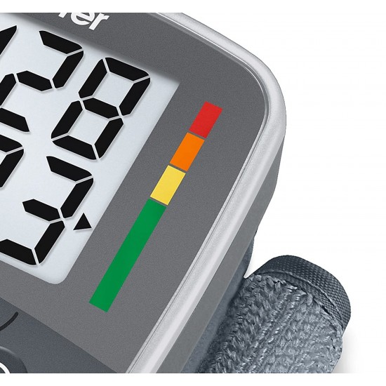 Free Shipping on orders above ₹599 Product Description :Wrist blood pressure monitors offer assurance in a compact form. They allow you to regularly monitor and keep an eye on your blood pressure. Beurer offers you the best wrist blood pressure monitor - BC32 with a number of features.Beurer BC32 - Wrist Blood Pressure Monitor is a fully automatic medical device based on german engineering & is specially designed to used for non-invasive measurement and monitoring of adults’ arterial blood pressure. You can use it to measure your blood pressure quickly and easily, storing the results and displaying the progression of readings. A warning is issued for anyone suffering from cardiac arrhythmia. The recorded values are classified and evaluated graphically. |