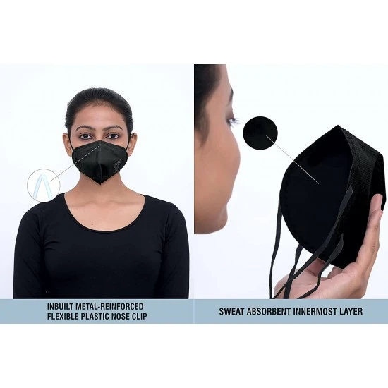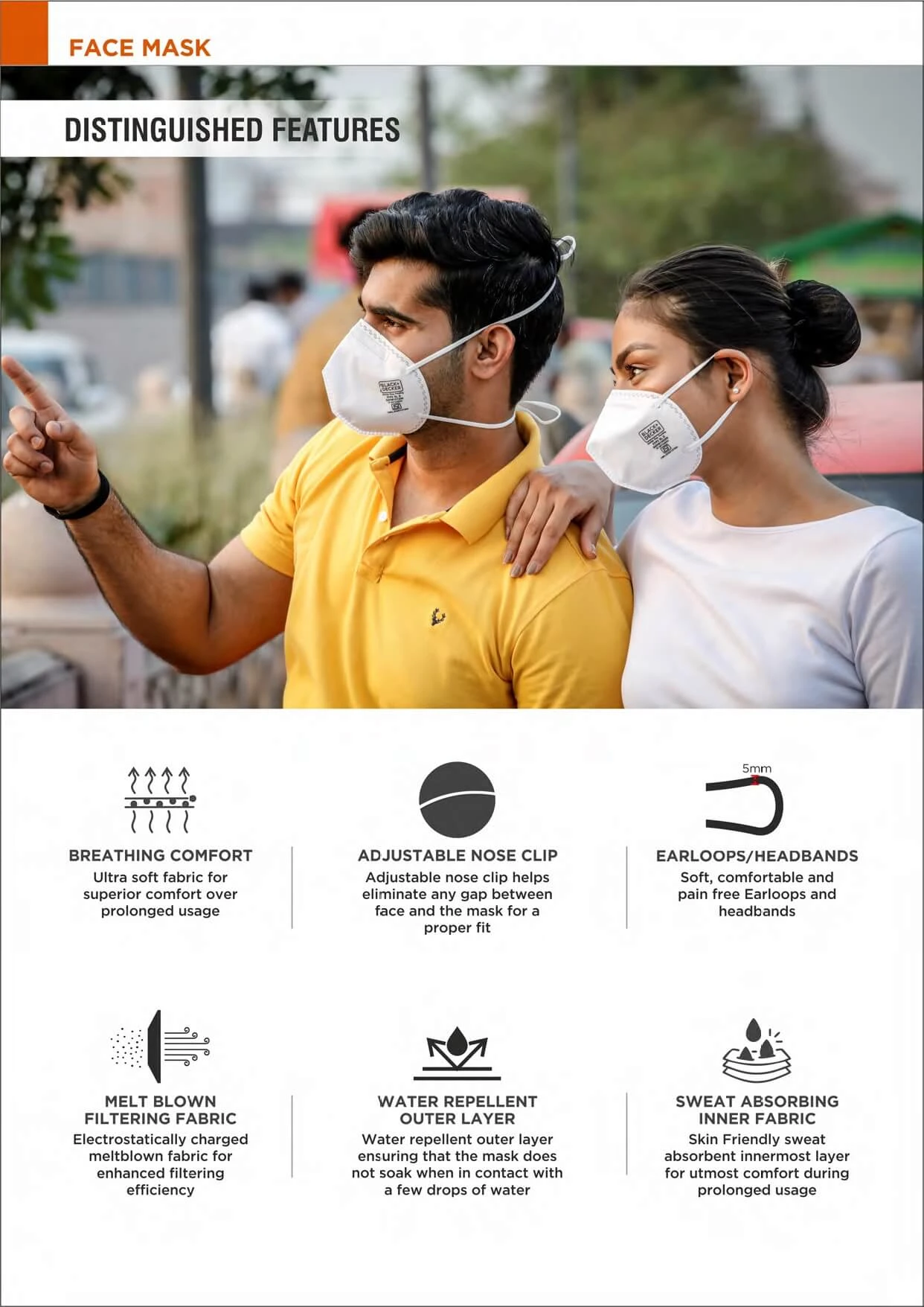 Free Shipping on orders above ₹599 Product Description : Black+Decker Safety introduces its range of FFP2 Disposable Face Masks for complete protection with superior comfort. The range is specially designed to filter air contaminants, which helps the user to breathe germ-free air.Black+Decker N95 Disposable Face Mask with convenient headband comes with a comfortable nose pad. It has hypoallergenic elastic headband with ergonomic adjustor which makes it ideal for protection against dust, aerosols, viruses and bacteria. |