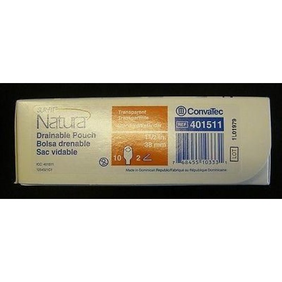 Free Shipping on orders above ₹599 Product Description :ConvaTec 401511 (38mm) SUR-FIT Natura® Transparent Drainable Pouch is one among the Two-Piece Ostomy System (i.e. ConvaTec’s most extensive two-piece product line) of ConvaTec. The SUR-FIT Natura® Flange System (skin barrier/baseplate) used with this drainable pouch signals a secure, accurate closure with a series of audible “clicks”. A simple snap-off, snap on design allows users to change the pouch quickly to match activities without removing the skin barrier from the skin. ConvaTec 401511 (38mm) drainable bag has a soft, fabric-like comfort panels. With streamlined body contour panel, low-profile design, and less headroom, they distribute pouch content more evenly and away from the stoma. In addition, drainable pouch is available with the tail closure system that offers double security, ease of drainage, comfort and cleanliness. The easy to open outlet end strips and tail design help control flow and reduce splashing. The locking mechanism is enhanced by an additional security flap for added peace of mind. Features & Specification :