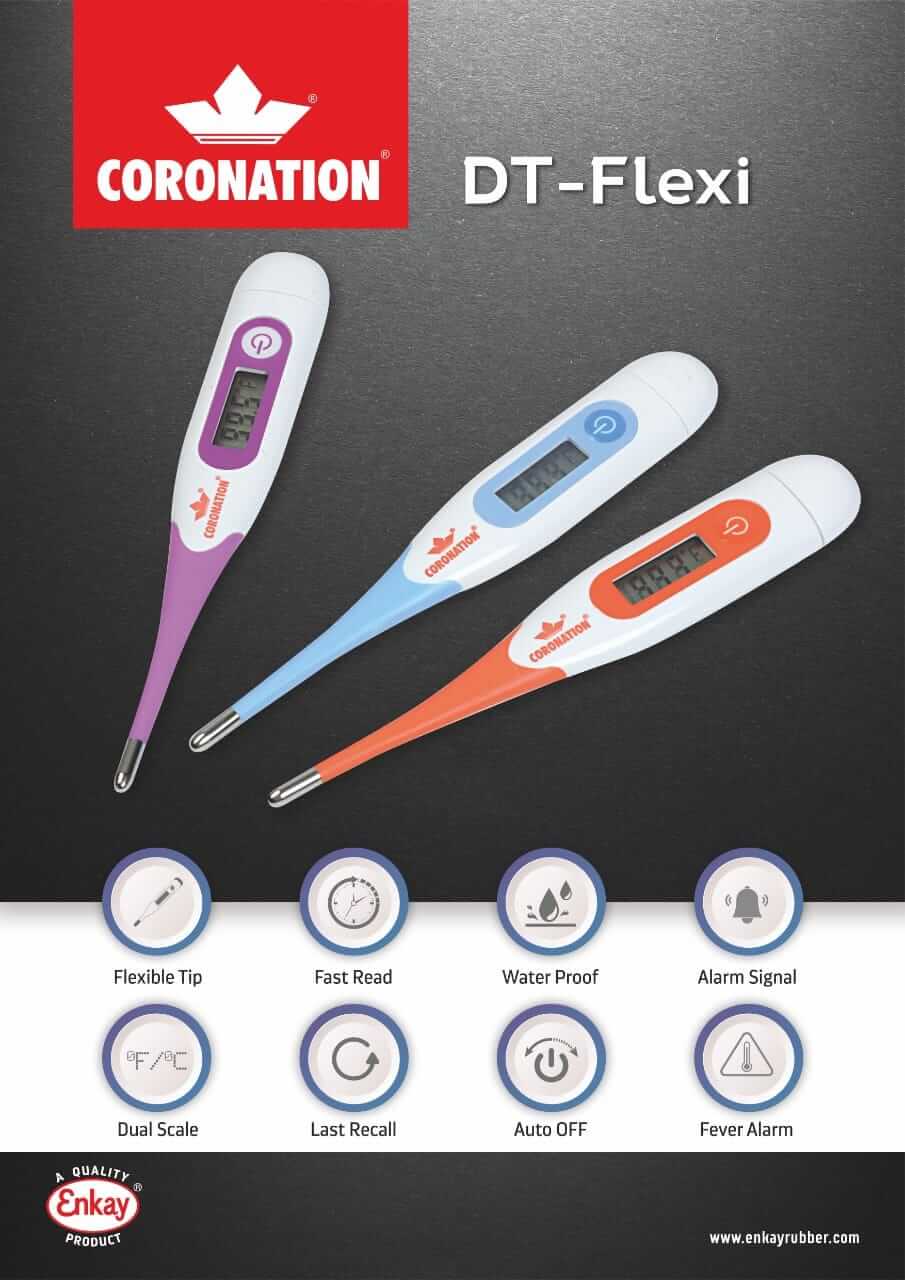 Free Shipping on orders above ₹599 Product Description: Coronation (DT Flexi) Digital Thermometer - Multicolor has a soft and flexible tip which makes it ideal for both adult and children. Further, this coronation digital thermometer (dt flexi) features includes Waterproof, Fast Read, Dual Scale, Alarm Signal, Auto Off, Fever Alarm and Last Recall function. |