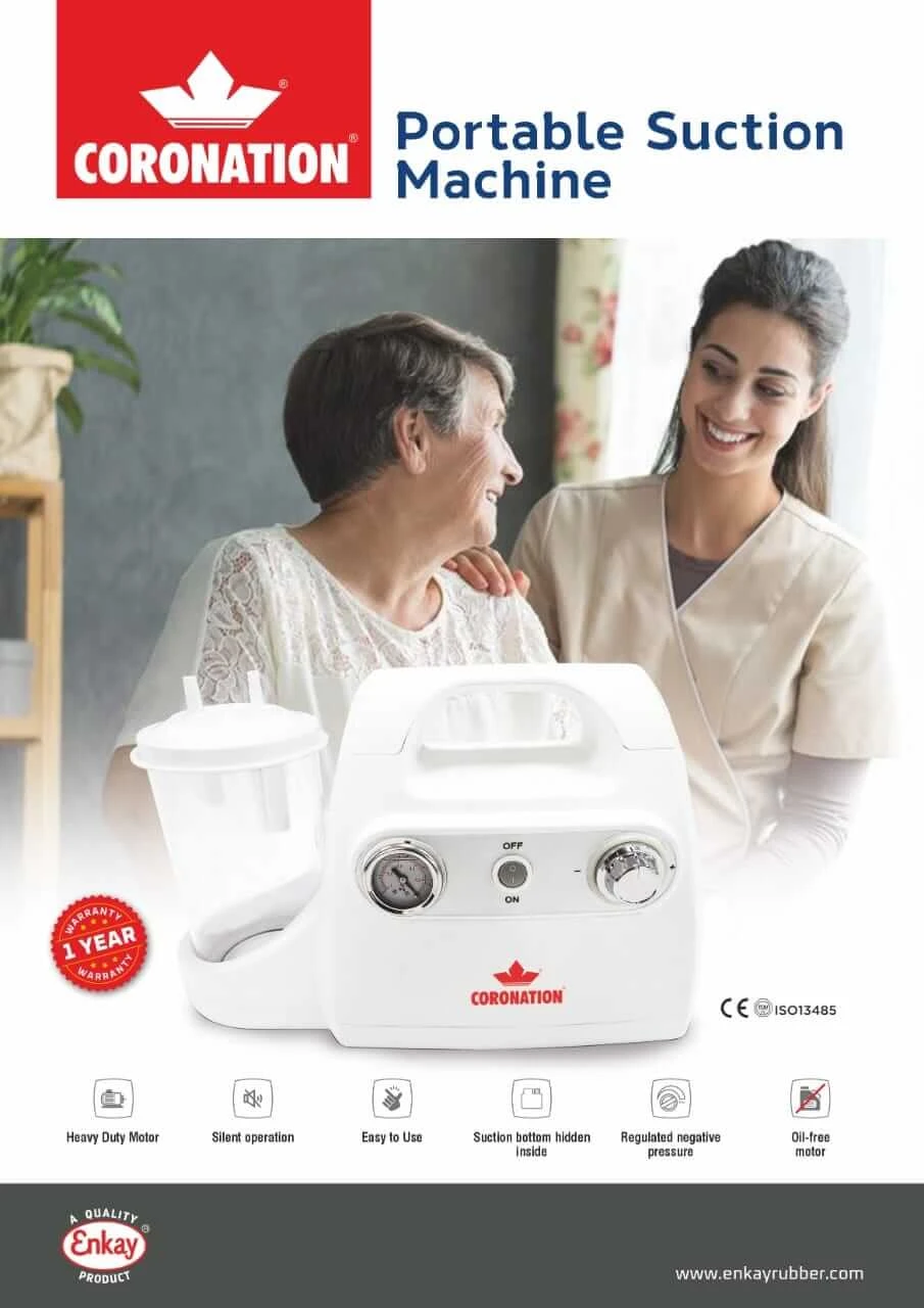 Free Shipping on orders above ₹599 Product Description : Coronation Portable Phlegm Suction Machine is a heavy duty medical suction unit ideal for use by patients who have problem in phlegm removal due to sickness, coma, or operation, as well as for aspirating such liquids as pus and blood during the clinical practice. Coronation Portable Suction Machine is a commonly used medical device in the emergency room, operation room, and for nursing in the sickroom and home healthcare. These are designed based on developing orientation of similar products at home and abroad is a new generation of oil free lubrication aspiration device. Also suitable for first-aid and door-to-door medical treatment because of its features such as small volume, light weight and easy to carry about. | |