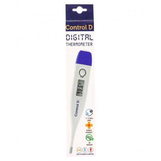 Control D Digital Thermometer is a body temperature sensing device that is easily portable, have permanent probe, and a convenient digital display manufactured by Haiden Technology Pvt. Ltd. This digital thermometer is very easy to use & measures your body's temperature within few seconds. It can be used by both child & adult. Gives appropriate and precise results. Oral, Oxter and Rectal measurement can be done through this digital thermometer.