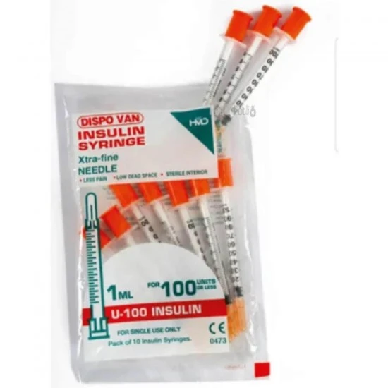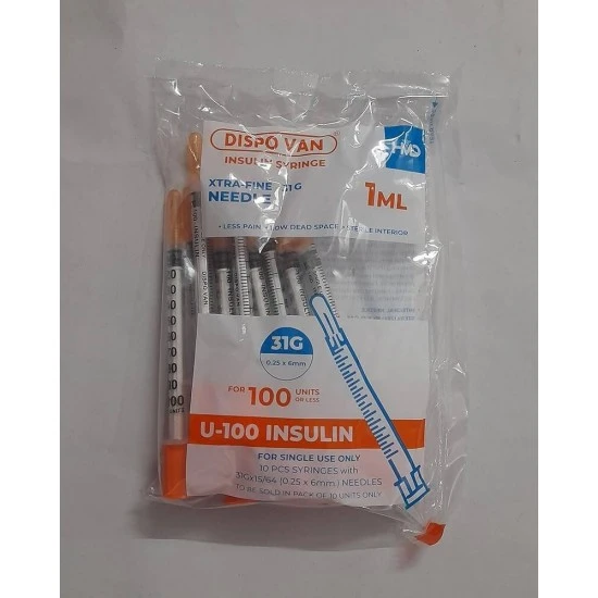 Dispovan One-time Use Insulin Syringes are made in compliance with the highest quality standards. The insulin syringes comes with 31G x 5/16″, ‘Xtra-Fine’ siliconized insulin needles in order to reduce patient pain during injection. Low dead space ensures that the dosage is accurate and there is no wastage of medication. The convenient, easy to handle and patient friendly single-use insulin syringes also minimize the chances of spreading blood borne infections and deadly diseases.