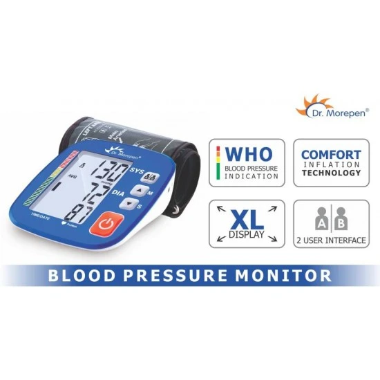 Free Shipping on orders above ₹599 Product Description :Dr. Morepen BP One Model BP-02-XL - It is a smart fully automatic digital upper arm BP Monitor with Extra Large Display, Comfort Inflation Technology for Convenient Measurement. This BP Monitor comes with smart features: WHO Indicator, Extra Large Display, Irregular Heart Beat Detection,2 User Interface,Memory Function - 250 Per User with Date and Time.It measures Systolic and Diastolic pressure accurately and also displays the pulse rate. |