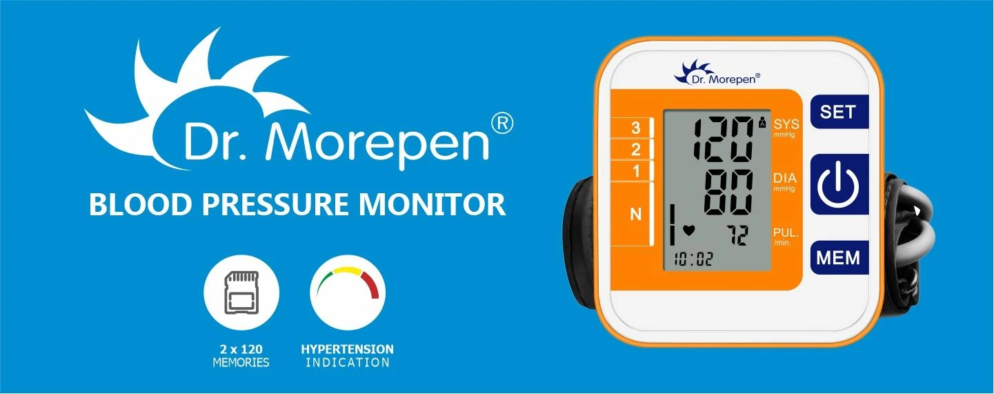 • LCD Display: The Dr. Morepen BP‑14 device is equipped with a large liquid crystal display (LCD) screen, making it easy and effortless to view blood pressure readings.