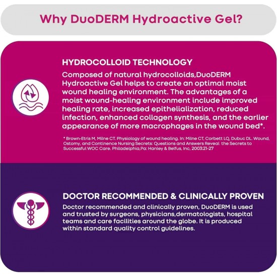 ConvaTec DuoDERM Hydroactive Gel is a clear, sterile, viscous hydrogel that incorporates a unique ConvaTec hydrocolloid formulation that distinguishes it from other hydrocolloid dressings.