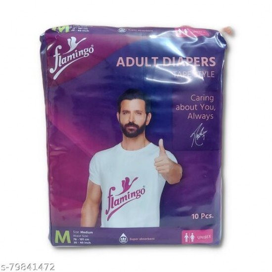 Free Shipping on orders above ₹599 Product Description : Flamingo Adult Diapers Medium (Pack of 10 Pcs) are tape style, super absorbent adult disposable diapers ideal for patients with 30-40 inch/ 76-101 cm waist size. These Adult Diapers from Flamingo are unisex diapers which makes them useful for both men and women.Useful For : |