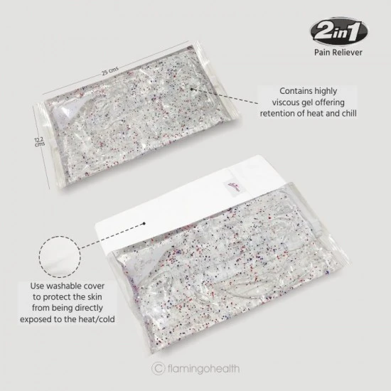 Free Shipping on orders above ₹599 Product Description :Flamingo Hot & Cold Pack is a 2 in 1 pain reliever as it contains non-toxic & highly viscous gel which improves the retention of heat/ chill and helps in effective pain management. Flamingo Hot & Cold Pack is a re-usable product and can alternatively be used as Cyrotherapy & Thermotherapy.Cyrotherapy (Cold Therapy): Relieves Knee, Shoulder, Ankle pain and toothache. Used post injury, Cyrotherapy reduces the blood flow thereby swelling and redness.Thermotherapy (Heat Therapy): Relieves chronic pain, muscle spasm and stiffness. Used in chronic pain, Thermotherapy offers relief from joint pain, muscle spasm and stiffness.Used as Cold Pack : it reduces the blood flow thereby reducing swelling post injuriesUsed as Hot Pack : it increases the blood flow thereby reducing muscle spasm and offering relief from chronic Knee, Elbow and Shoulder painFlamingo Hot & Cold Pack is flexible and should be used with the washable outer cover.(provided with the pack) to protect the skin from being directly exposed to the heat or cold.Where to Use ?Usage as Hot Pack