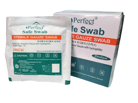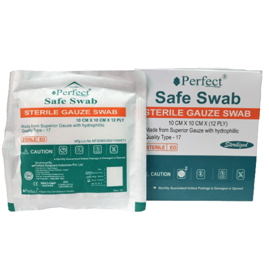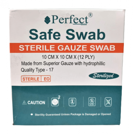 Product Description : Perfect Safe Swab Sterile Absorbent Gauze Swab 10cm x 10cm x 12 Ply is made from superior gauze (100% cotton) with hydrophillic. This Quality Type - 17 Gauze Swab is sterilized with EO.Perfect Safe Swab Sterile Absorbent Gauze Swab is known for its bacterial resistant properties, absorbent properties and safe to use nature. The offered product is manufactured under the guidance of skilled professionals keeping in mind defined industry norms. Quality controllers Team of Perfect Surgicare Industries tests this product on various parameters to ensure quality.One pouch of Perfect Safe Swab Sterile Absorbent Gauze Swab contains 4 pieces. |