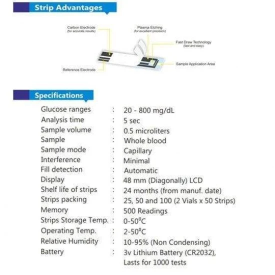 • Pack of 100 Blood Glucose Test Strips (2x50) |