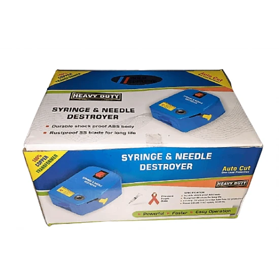 Free Shipping on orders above ₹599 Product Description : Gold Supreme Electric Syringe & Needle Destroyer/ Hub Cutter (Heavy Duty) has a durable shock proof ABS body and rustproof stainless steel blade for long life. This electric syringe & needle destroyer has two slot easy operation for destroying needle & syringe. It also comes with an auto cut function and 100% copper transformer for over load protection.This electric hub cutter burns needle electrically and cuts syringe manually within seconds. It can destroy disposable syringe & needle 18G to 28G. Collection receptacle is also given with it to collect the waste. Option to On/Off switch with pilot lamp is also provided.Gold Supreme Syringe and Needle destroyers are widely demanded in different hospitals, clinics, pathologies and nursing homes for disposing used syringes and needles. These are manufactured using high grade materials for long lasting usage. |