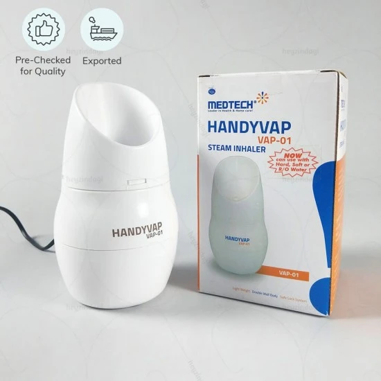 HandyVap Steam Inhaler - Premium quality electric steam inhaler by MedTech. It has 100% plastic body to prevent shocks. It has double wall body to avoid any injury due to hot water while handling the machine.