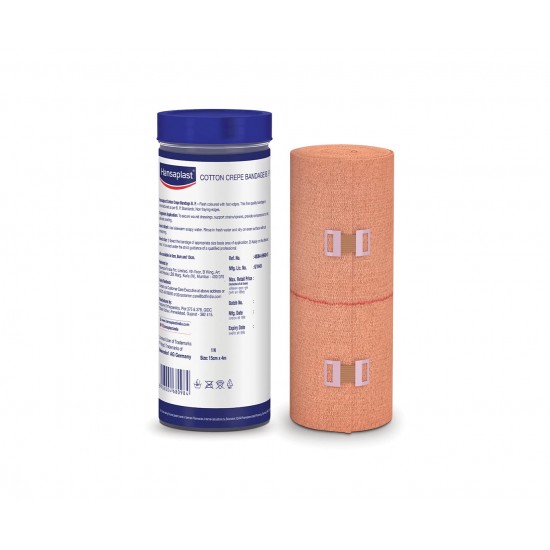 Hansaplast Cotton Crepe Bandage is a type of of elastic bandage made from woven cotton fabric which provides optimum support to the injured area and helps in relieving pain by offering warmth and firm compression. The material of the bandage is soft and skin friendly. Its discreet flesh coloured material blends well with the skin. It can be washed in lukewarm water with mild soap, providing long-term usability. The edges are sealed to prevent fraying even after multiple washes. This fine quality bandage is available in 4 sizes: 6cm, 8cm, 10cm & 15cm for multipurpose usage.