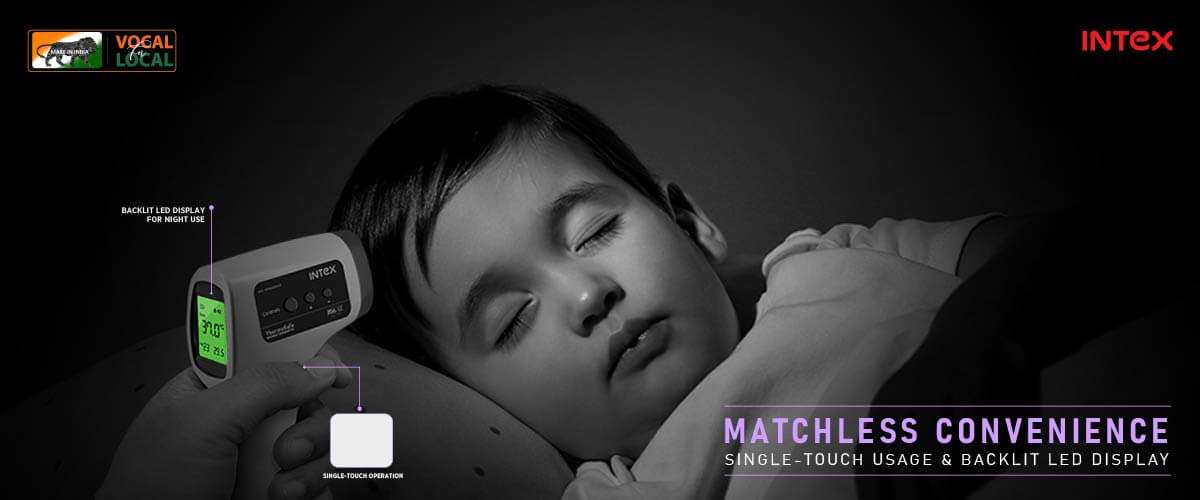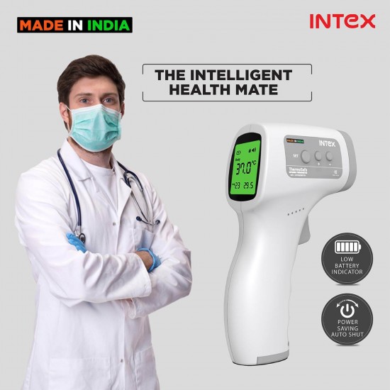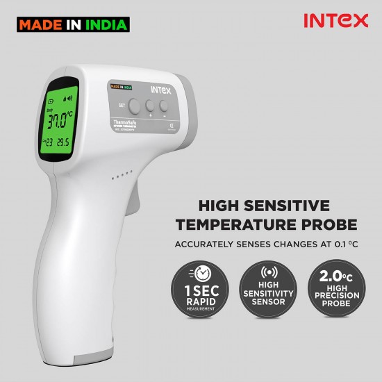 Product Description : Intex ThermoSafe Non Contact Digital Infrared Thermometer measures the body temperature by collecting infrared thermal radiation from the forehead of the human body. Its operation is simple and hygienic, and the measurement is fast and accurate. The user only needs to point the probe head at the forehead and press the measurement button and the body temperature can be quickly and accurately measured in 1 second, which can be used by the family and medical departments to measure the body temperature. This Non Contact Infrared Thermometer assists you to read the measurement at a glance with great clarity.Intex ThermoSafe Non Contact Infrared Thermometer is designed for all ages, adults, infants and the elderly. This thermometer safely measure temperatures without having to get in contact with the surface and has a response time < 1 second. Its ergonomic and compact gun-style design enables simple & easy to handle use of the thermometer. It also comes with fever warning function when detected. This thermometer is equipped with the most advanced infrared technology. Measurement distance for using it is in between 3cm-5cm. This IR thermometer is very easy to use : just point and press the button and it read the temperature so easily.Some of the Main Features :-