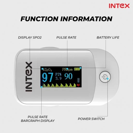 Free Shipping on orders above ₹599 Product Description :OxiSure Fingertip Pulse Oximeter from Intex brand is a type of non-invasive and continuous medical device for detecting the arterial oxygen saturation (SpO2) and pulse rate of human body. Intex portable pulse oximeter let you check your blood oxygen accurately and instantly to know if you are lack of oxygen at present or not.The Intex OxiSure Fingertip Pulse Oximeter is a tiny and simple reusable device that can detect the blood oxygen saturation level and pulse rate of human body through fingers. This product is suitable for family, hospital, oxygen bar, sports health care (before and after sports, not recommended in the process of sports), community medical treatment, etc.Intex OxiSure Fingertip Pulse Oximeter is available in silver or black color. Color choice will be subject to availability at the time of dispatch. |