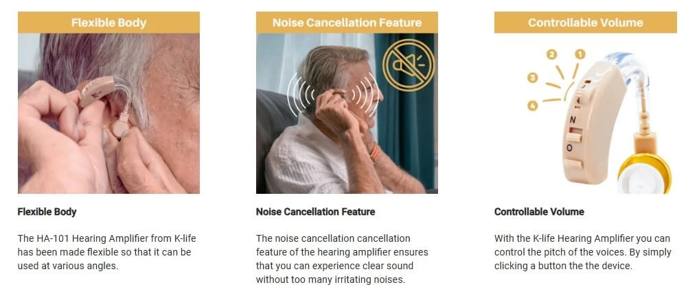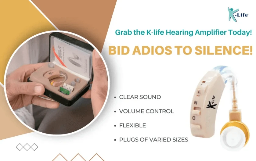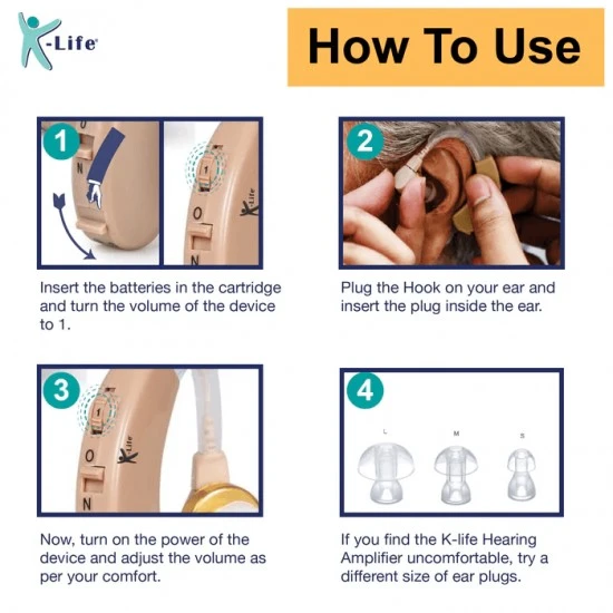 Free Shipping on orders above ₹599 Product Description : K-life Hearing Amplifier HA-101 is a behind the ear hearing aid designed for individuals who wish to bid farewell to silence from their lives! The K-life Hearing Amplifier-101 with its volume control feature helps people with hearing impairment to set the volume of their world as per their sensitivity and needs. The noise cancellation feature of the HA-101 ensures that you receive only clear sound and cut out unnecessary noise. The flexible and soft-to-touch buds are flexible and ensure that you can comfortably wear the device throughout the day without any discomfort. |