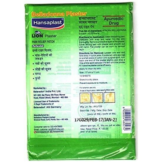 Manufacturer/Importer/Marketer Details | Beiersdorf India Pvt. Ltd. (Hansaplast) Phoenix Mall, Art Guild House, B Wing, F- 07, 4th Floor, Lal Bahadur Shastri Marg, Kurla West, Mumbai, Maharashtra 400070 |
