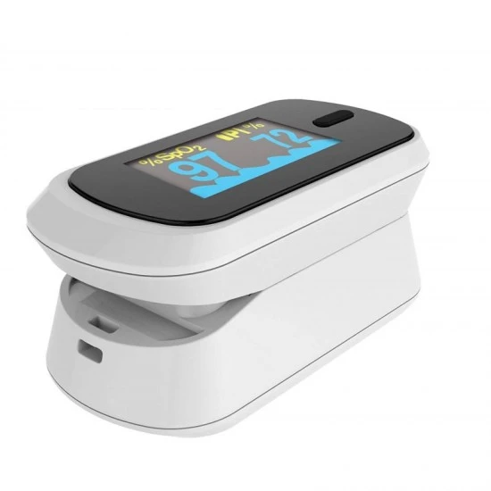 -Dual color OLED displays SpO2, PR, PI (perfusion index), Pulse bar, and waveform.