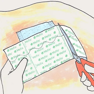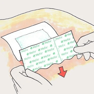 Please be careful not to apply Mefix® under tension – as this may cause shearing forces, which can damage the skin. This is particularly important over joints.