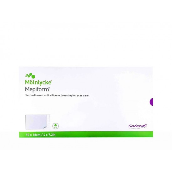 Mepiform Non Sterile (10cm x 18cm) by Molnlycke is a self-adherent soft silicone dressing specially designed for care and management of both old & new scars.
