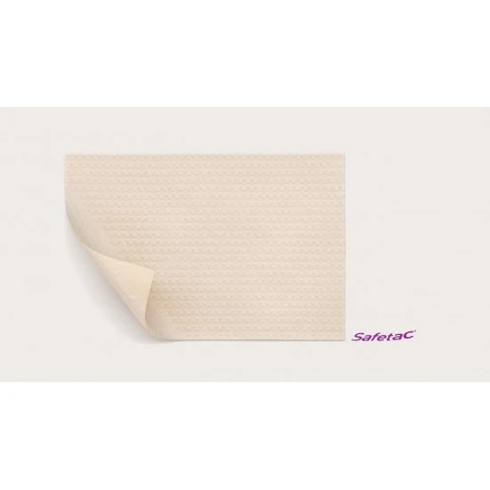 - A contact layer consisting of soft silicone unique adhesive (Safetac®) that adheres gently to fragile tissue and skin and ensures removal with least pain and trauma