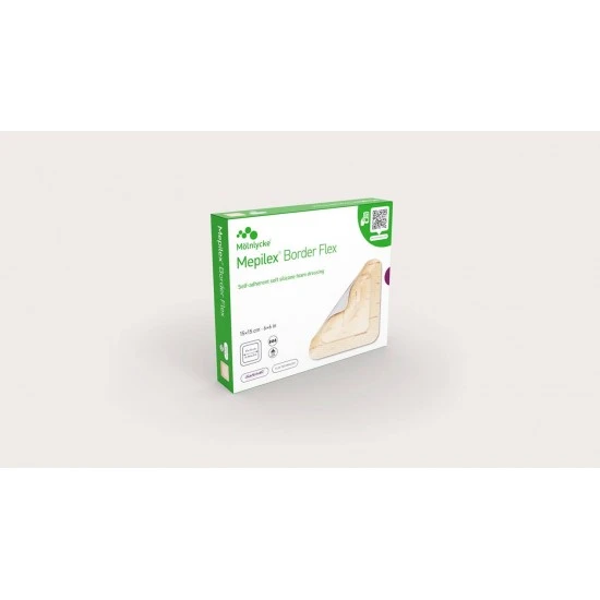 Free Shipping on orders above ₹599 Product Description : Mepilex Border Flex (15cm x 15cm) by Molnlycke is a self-adherent soft silicone multipurpose all-in-one foam dressing specially designed to uniquely conform and stay on; aiming to give time back to nurses, cost savings back to managers and quality of life back to patients.Mepilex Border Flex is a self-adherent, absorbent flexible dressing that maintains a moist wound environment. The waterproof outer layer protects from dirt and bacteria. The dressing has a Safetac® wound contact layer that is a unique adhesive technology. It minimises pain to patients and trauma to intact skin or wounds at dressing removal.Mepilex Border Flex consists of: