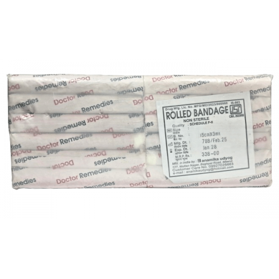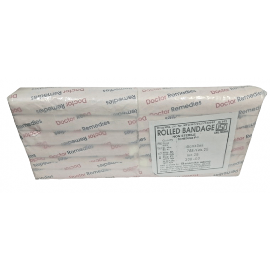Free Shipping on orders above ₹599 Product Description : Rolled Bandage also known as roller bandage or gauze roll bandage is most commonly used bandage in the healthcare sector as it offers various uses including first aid in home, nursing homes, hospitals, manufacturing industries, sports, schools, clinics and travel etc., protecting wound from external containments, securing dressings by keeping them in their place, supporting injuries through compression by wrapping around affected area, controlling bleeding and swelling and many more. |