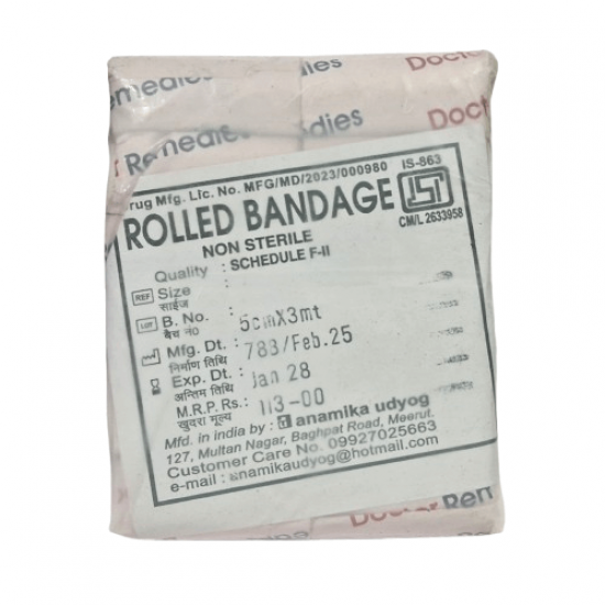 Free Shipping on orders above ₹599 Product Description : Rolled Bandage also known as roller bandage or gauze roll bandage is most commonly used bandage in the healthcare sector as it offers various uses including first aid in home, nursing homes, hospitals, manufacturing industries, sports, schools, clinics and travel etc., protecting wound from external containments, securing dressings by keeping them in their place, supporting injuries through compression by wrapping around affected area, controlling bleeding and swelling and many more. |