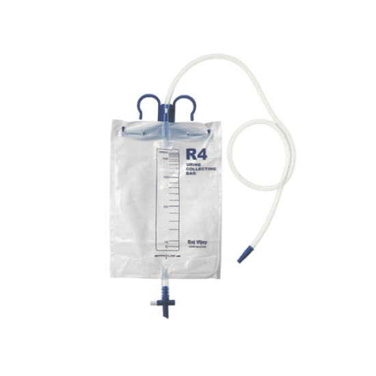 Features & Specifications : Specially designed 100% closed urine drainage system.Two litre capacity bag manufactured from extra strong yet transparent sheeting to provide clear vision of the colour of urine.Non-return valve to prevent the backflow of urine.Single hand operated “T” type bottom outlet facilitates extremely fast emptying of the urine bag.Large bore, transparent, kink resistant flexible tubing ensures unrestricted flow of urine.Unique foldable hanger provided with tube holder is suitable for bed side hanging and keeps the tube in upright position.Sterile, individually packed in peelable pouch. |