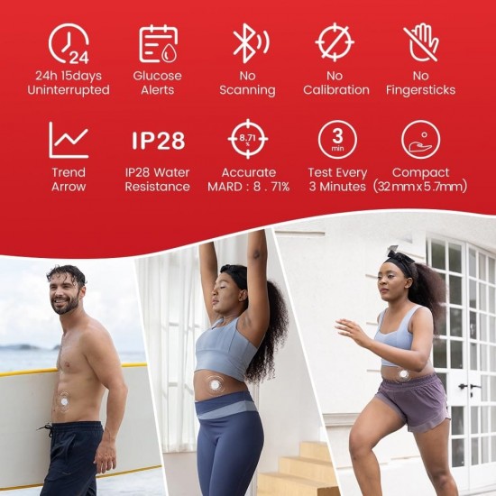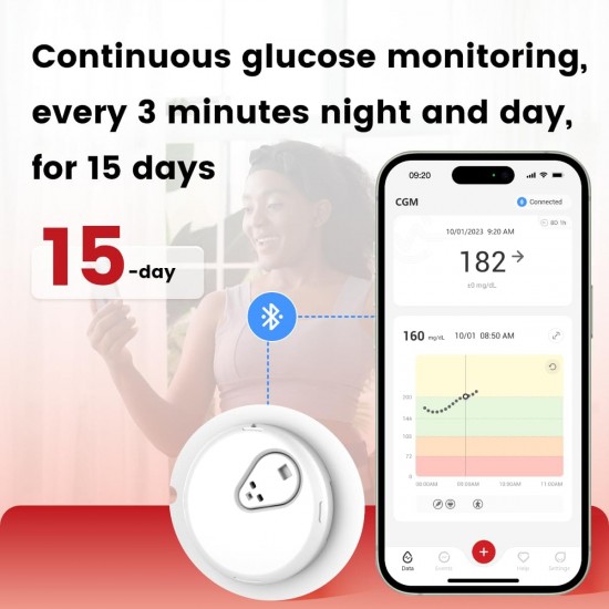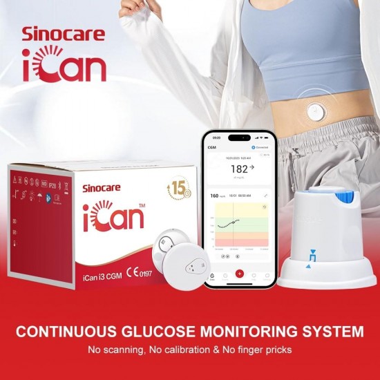 Free Shipping on orders above ₹599 Product Description :Sinocare iCan i3 CGM 15 Days Continuous Glucose Monitoring Advanced Sensor Technology - The iCan i3 CGM utilizes cutting-edge sensor technology to provide precise and reliable glucose level detection. Easy to Use, No Finger Prick, No Scanning, No Calibration.User-Friendly Design: The iCan CGM App is designed with simplicity in mind. Its intuitive interface and clear display make monitoring effortless.Real-Time Alerts: The iCan i3 CGM provides real-time alerts, notifying users of high blood sugar and low blood sugar levels. Additionally, users can customize the threshold for real-time alerts based on their individual needs and conditions.Long-Wear Life & Waterproof: The iCan i3 CGM offers long-lasting uninterrupted monitoring. With its 15-day wear-life and measurements taken every 3 minutes, the CGM performs an impressive total of 7160 measurements.Important Safety Information: |