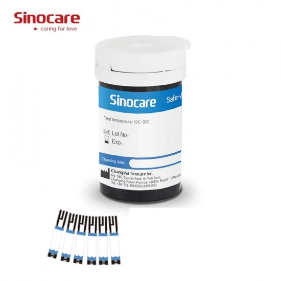 Free Shipping on orders above ₹599 Product Description :Sinocare Safe Accu Blood Glucose 50 Test Strips - 2x25 Pack is used only with Sinocare Safe Accu Glucometer to quantitatively determine glucose in human whole blood taken from the fingertip (capillary) or from the vein (venous). The sinocare safe-accu test strips are code-free test strips thus it does not require any type of manual coding. The test strips have advanced technology (FAD-GDH system) and stability. Fast results within 10 seconds are given in the standard measurement of mg/dL or mmol/L after applying only 0.6 micro liters blood sample.0.6μL Micro Blood Sampling : Using the siphon principle design, the blood sample is quickly and automatically inhaled when it touches the sinocare safe-accu test strip, which greatly reduces the volume of blood collected and reduces the probability of repeated measurements due to insufficent blood sampling.Sinocare Safe-Accu Glucometer Test Strips are intended for use outside the body (in vitro diagnostic use) for self-testing use as an aid in the management of diabetes.Sinocare Safe Accu Blood Glucose 50 Test Strips Pack contains 2 vials of 25 test strips each.Please use the Sinocare blood sugar test strips within the valid time (six months after opening).Features & Specifications :