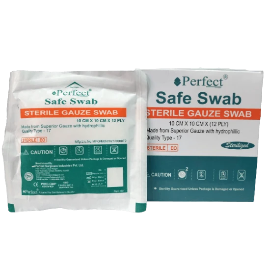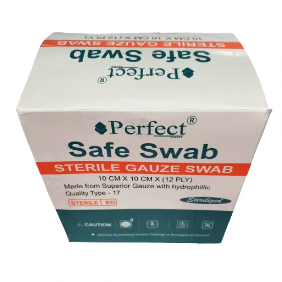 Free Shipping on orders above ₹599 Product Description : Perfect Safe Swab Sterile Absorbent Gauze Swab 10cm x 10cm x 12 Ply is made from superior gauze (100% cotton) with hydrophillic. This Quality Type - 17 Gauze Swab is sterilized with EO. |