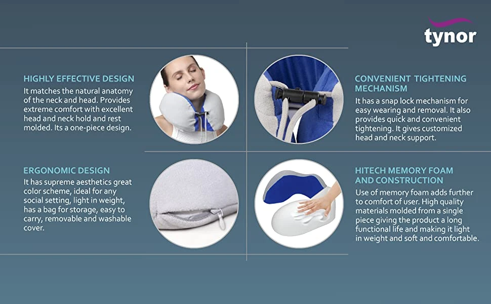 Free Shipping on orders above ₹599 Product Description : Tynor Travel Pillow Urbane is, portable neck support, which allows travelers to conveniently secure/rest the neck without conscious effort during sleep. Sleeping during travel without support may lead to muscle strain or pain in the neck. Anatomically contoured for full head support and pleasure of sleep. Quick tightening to achieve comfortable fit and proper hold/rest. The neck musculature stays relaxed without any fatigue while resting. |