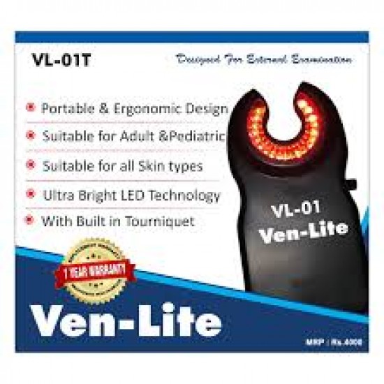 The Vein Light is a hand held battery powered illumination vein finder device for finding veins and assisting in vein access. Surface illumination is possible using 10 orange & 10 red LED's placed alternaly. This placement is used to uniformly illuminate a small region of skin and subcutaneous tissue, anywhere on the body, without any areas of shadow. The illumination technique allows better visualization of veins than any other method. The design of vein light is such that during vein access, the vein is visualized, skin is stretched and vein is secured to keep it from rolling. It is designed for external examination.This device is very useful which avoids multiple needle prick and no treatment delay.