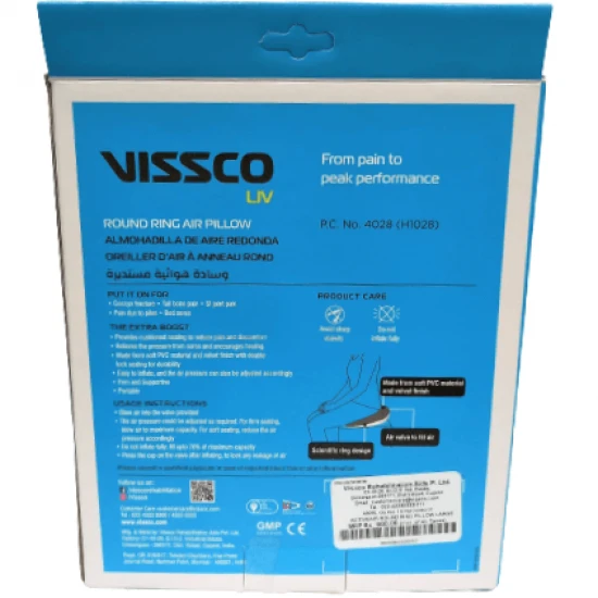 Free Shipping on orders above ₹599 Product Description : Vissco ACTIVEAIR Round Ring Pillow (H1028) is especially made with soft PVC fabric and come up with a velvet finish with double lock sealing for providing durability and comfort at its best. This Round Ring Pillow is mainly useful for the people who generally sits for the long hours while working in the office or home at the monitors or screens and are suffering from many discomforts like haemorrhoid pain, hip bursitis, prostate inflammation, coccyx fractures or tailbone pain. Vissco ACTIVEAIR Round Ring Pillow (H1028) comes in Small, Medium, Large and Extra Large sizes. |